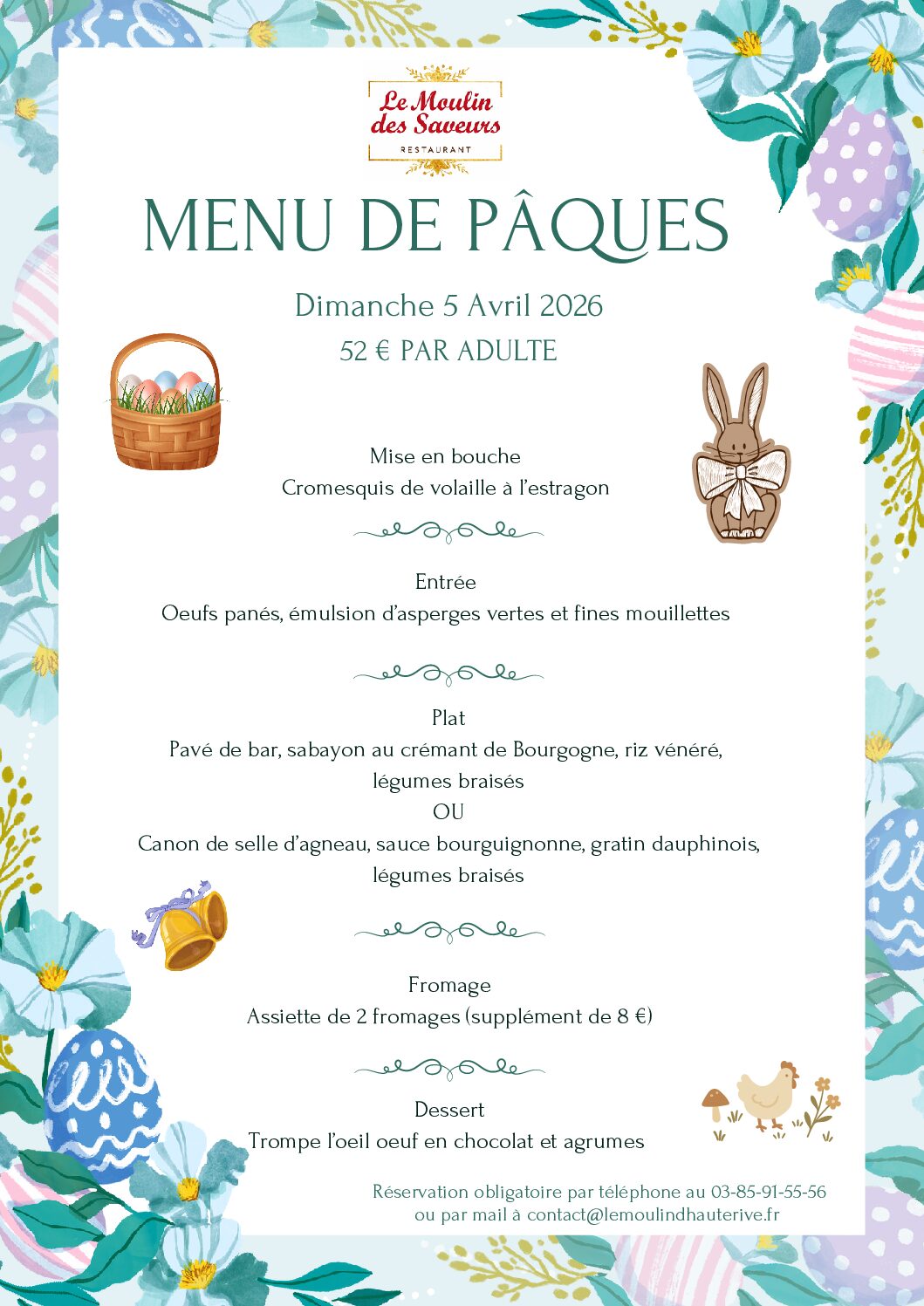 Menu de fêtes 31/12/2025 et 01/01/2026